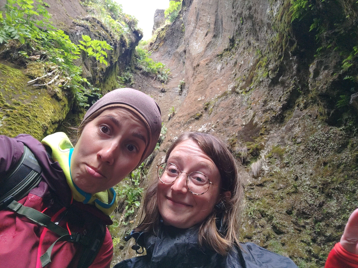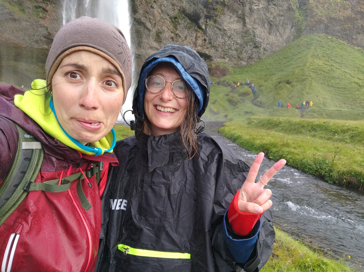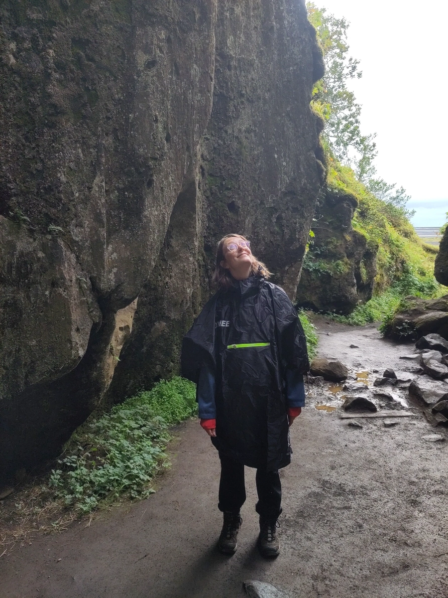 Nur eine halbe Stunde entfernt waren wieder einmal eine Reihe von Wasserfällen zu finden. Diese befinden sich an der Südwestecke des Eyjafjallajökull. Jo simmt! Des is der Vulkan der 2010 ausgebrochen is! Fost a bissl arg wie nahe des ois in Island so is! Wir haben es erfolgreich verdrängt und haben die Wasserfälle auf spezielle Art und Weise erkundet! Denn den Seljalandsfoss kann man „hintergehen” also hinterm Wasserfall herumlatschen. Den Gljúfurárfoss mussten wir suchen, denn der fällt wirklich in eine Höhle und ist von außen zunächst nur zu hören und nicht zu sehen. Nachdem wir ein eine falsche Spalte gelatscht sind - wir vermuten, da kam auch einmal Wasser runter, so wie die Felswände dort aussahen - haben wir die richtige Spalte gefunden…