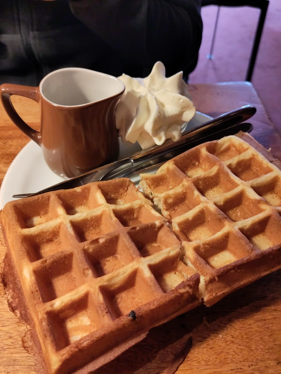 Zurück in Reykjavik, haben wir uns noch 1x Kaffee und Waffeln im Mokka Kaffi gegönnt, und dabei unsere letzten Postkarten geschrieben 😉. - Jupp wir waren schon sehr früh dran! Danach gehen alle eine Runde spazieren.