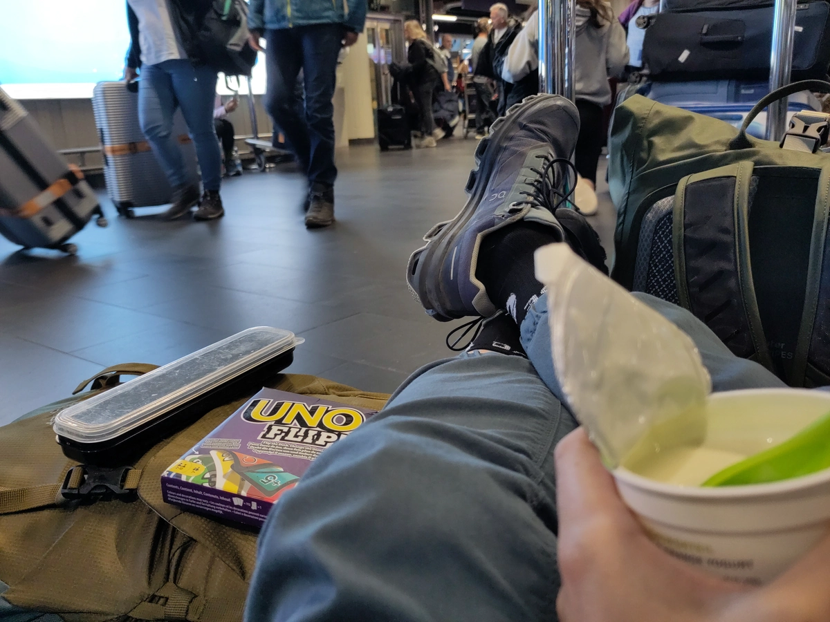 Nach einem wirklich super leckeren Abschlussessen im ROK fährt uns Steff sicher zum Flughafen in Keflavik, wir geben Helga zurück und stellen uns in die Warteschlange…