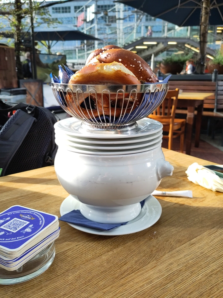 … stilecht zurück in München: Weißwurschtfrühstück im Airbräu… das können wir nur empfehlen!