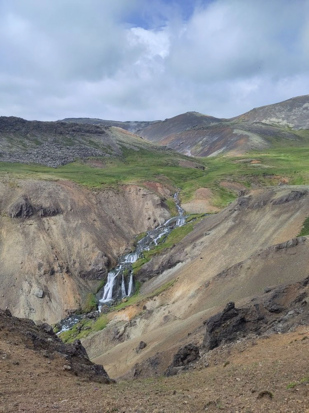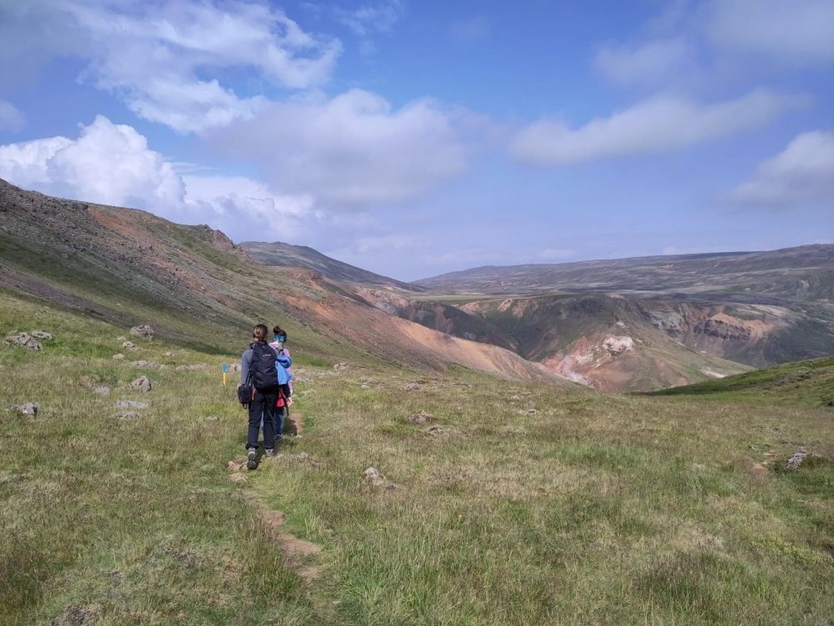 Naja… es war auf jeden Fall wunderschön und es war ein Abenteuer. Wir waren so ziemlich alleine unterwegs.Nur eine Isländerin mit Hund haben wir getroffen, die selbst die Ruhe im Tal und die Tatsache, dass man hier die Aktivität in der Erde spüren und hören kann feierte.