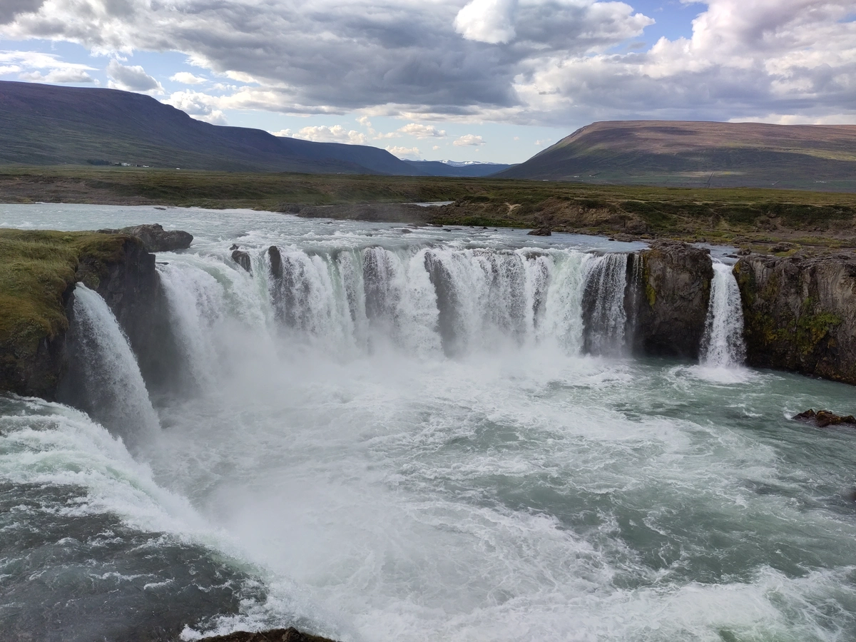 - Der Fluss Skjálfandafljót bildet den Wasserfall und kommt quasi direkt vom Vatnajökull zum Wasserfall.
