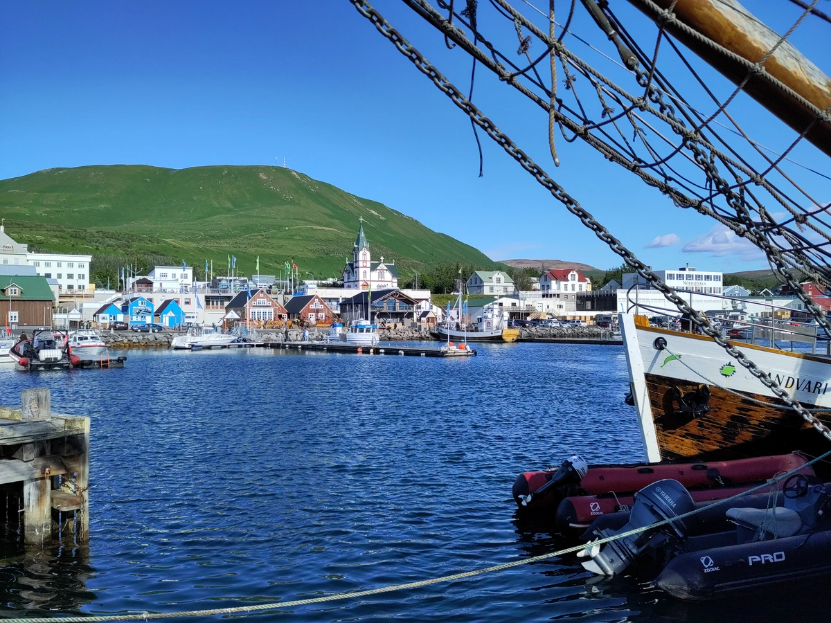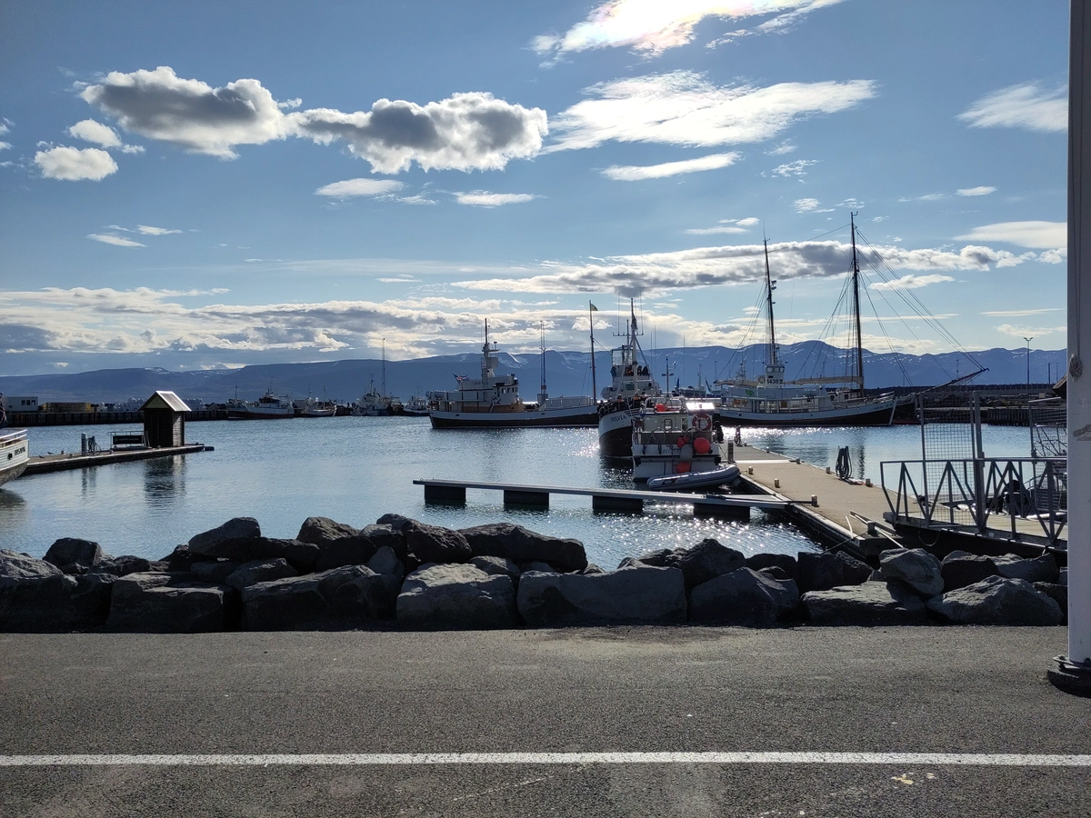 Dieser kleine Fischerort ist ein echter Geheimtipp. Das Örtchen liegt idyllisch an einem Fjord. Mit den bunten Häuschen der aus Holz gebauten Kirche, der kleinen, aber feinen Hafenpromenade und den dort liegenden (Segel-)Schiffen erinnert es irgendwie tatsächlich an Wickie und die starken Männer. Wir haben dort einige Leute getroffen, die sich auf eine whale watching Tour begeben haben, aber auch viele, die einfach die Ruhe in der Sonne genossen haben. In einem kleinen Souvenir Laden, in dem Selbstgemachtes von Locals verkauft wurde, haben wir, unter anderem, wieder einige Isländerpullis bewundert - die san doch ned olle so kratzig! 😁