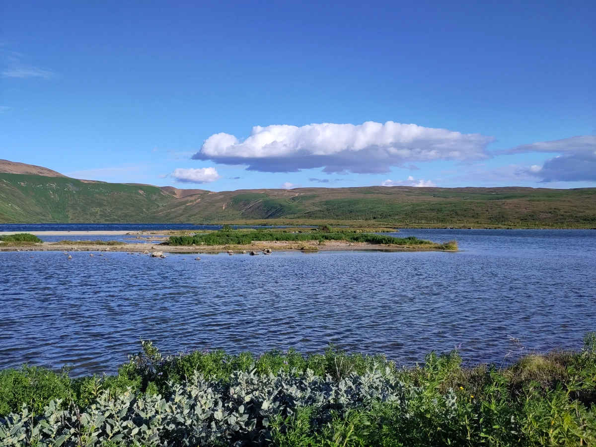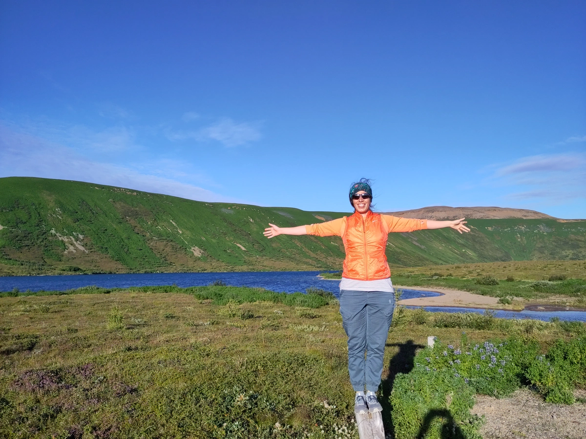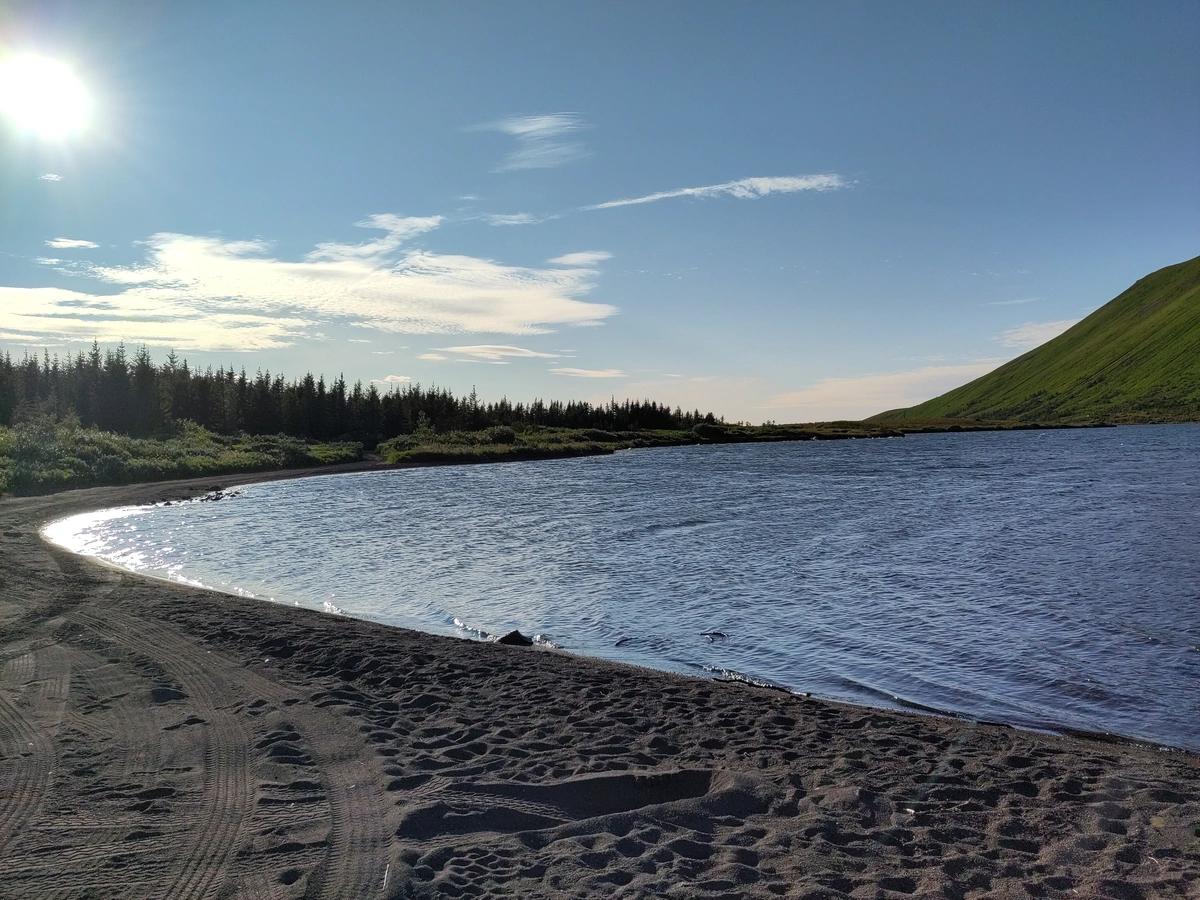 Außerdem haben wir unserem abenteuerlichen Wander-Reiseführer mit den akkuraten Wegbeschreibungen hier noch eine Chance gegeben! - Wir wollten ein Stück um den Botnsvatn spazieren, weil wir jetzt echt schon viel zu lange einfach nur im Auto gehockt sind. Im Reiseführer wurde der See als „wie ein überdimensionaler Infinitypool“ beschrieben, weil man einen wirklich großartigen Blick auf die Skjálfandi-Bucht (Erdbebenbucht) gewährt. Irgendwie lud das auch ein bisschen zum badln ein… Zum Glück haben wir das nicht gemacht - Denn der Botnsvatn geht bei uns aus folgenden Gründen als „Itchy-See“ in die Reisegeschichte ein!