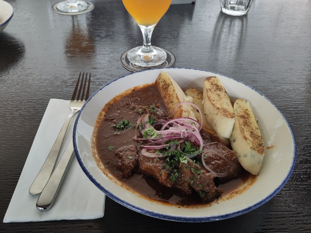 Gute Wahl lieber Steff! Wir konnten uns kaum entscheiden welchen Braten wir hier als Geburtstagsspeiserei verzehren sollten. Der Kellner war aber super - Bei allem das wir gefragt haben war seine Antwort mit leuchtenden Augen: „Oh yes! This is a good choice - it is also my favorite!” Natürlich haben wir ihm dann auch vertraut, als es um die Auswahl des Bieres ging… Und so schaute das Ganze dann aus: