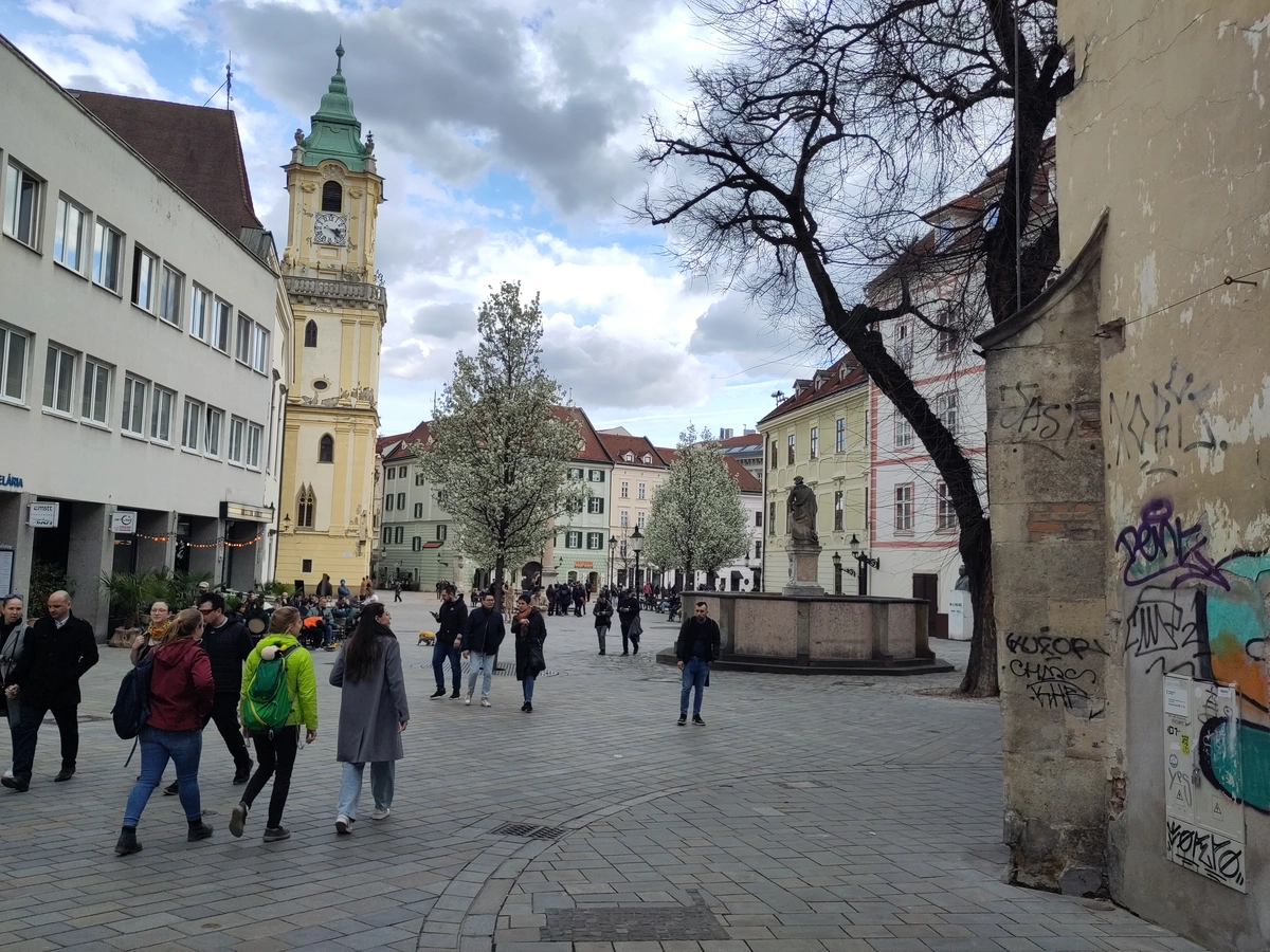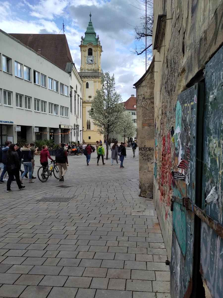 Nach einer guten Stunde kommen wir in Bratislava 🇸🇰 an und kapieren, dass wir insgesamt doch nur eine Stunde später als geplant unser Ziel erreicht haben und sind total happy. Wir spazieren quer durch die Altstadt durch die heilige Partyhölle 🎉 (oida schwed - da gings ja richtig ab!) - Aber total cool irgendwie, so viele gut gelaunte - zugegeben möglicherweise durch irgendwelche lustigen Mittel berauschten 🚬 - Leute! Und so viele die draußen unterwegs sind! - NICE! Aber… nach der leicht anstrengenden Anreise, sind wir zwei Knaller einfach nur noch froh, dass wir ins Bett fallen dürfen. 💤