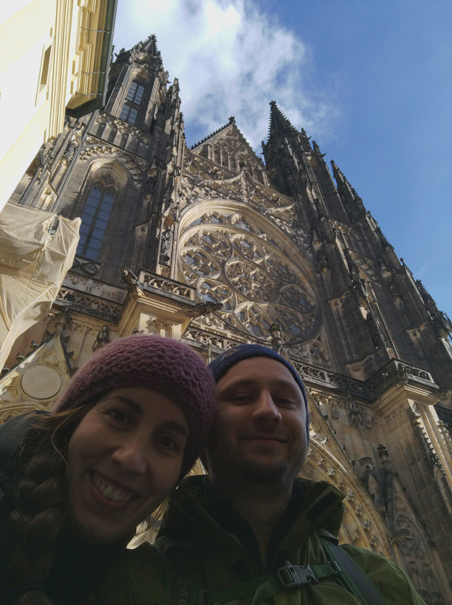 Weil uns das Ganze so gut gefallen hat, waren wir am nächsten Tag gleich wieder am Start und gingen mit Brandon über die Karlsbrücke (🇨🇿: Karlův most) zur Prager Burg (🇨🇿: Pražský hrad). In der Prager Burgeranlage zeigte er uns mit einem peinlich berührten Augenzwinkern und unter schallendem Gelächter einen amerikanischen Heiligen: St. Arbucks 😜.