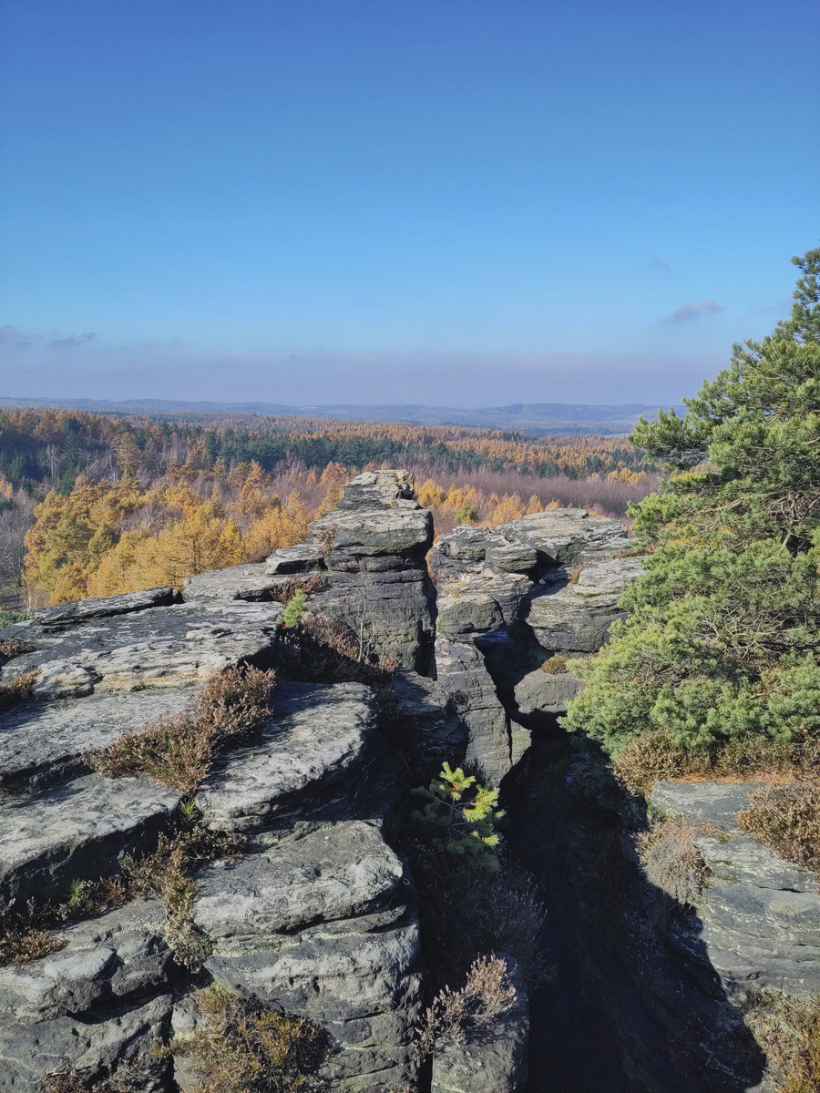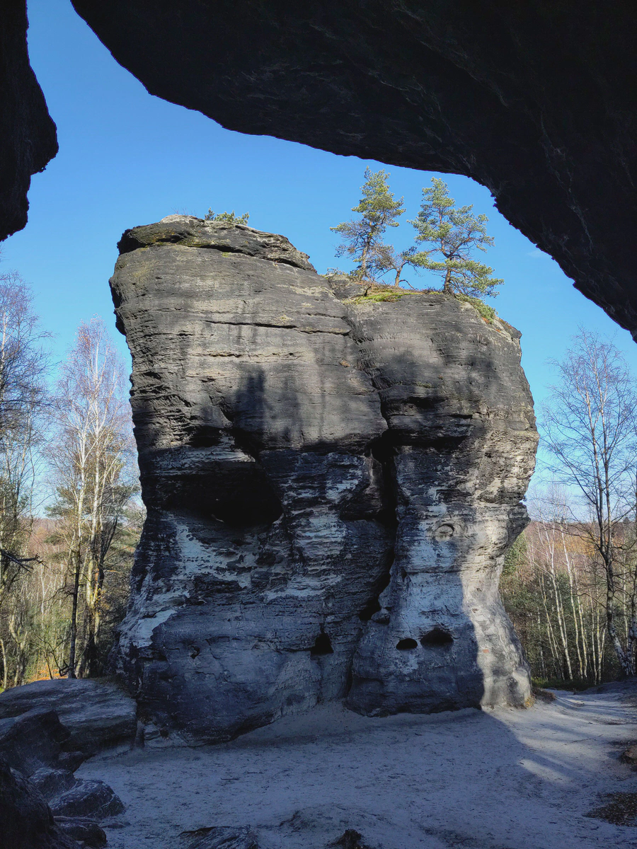 Über weite Strecken gibt es hier den sogenannten Elbsandstein. Der hat sich vor 85-100 Millionen Jahren am Grunde des Meeres gebildet. Es haben sich also sandige Elemente am Boden gesammelt und gefestigt. Viel später - das Meer hat sich verzogen - kam dann Erosion durch Sonne, Wind und Regen dazu. Dadurch bildeten sich eben Fugen und Spalten in diesem „Elbsandsteingebirge”. Und dann gab es auch noch Vulkanismus… der ist dafür verantwortlich, dass sich vulkanische, also härtere Ablagerungen sammelten. Weil diese eben härter sind erodieren diese langsamer. Dadurch bildeten sich unfassbar coole Felsformationen inkl. Höhlen, Nischen, Tunnel oder Sanduhren wie sie z. B. im Felsenlabyrinth in Tisá zu finden sind.