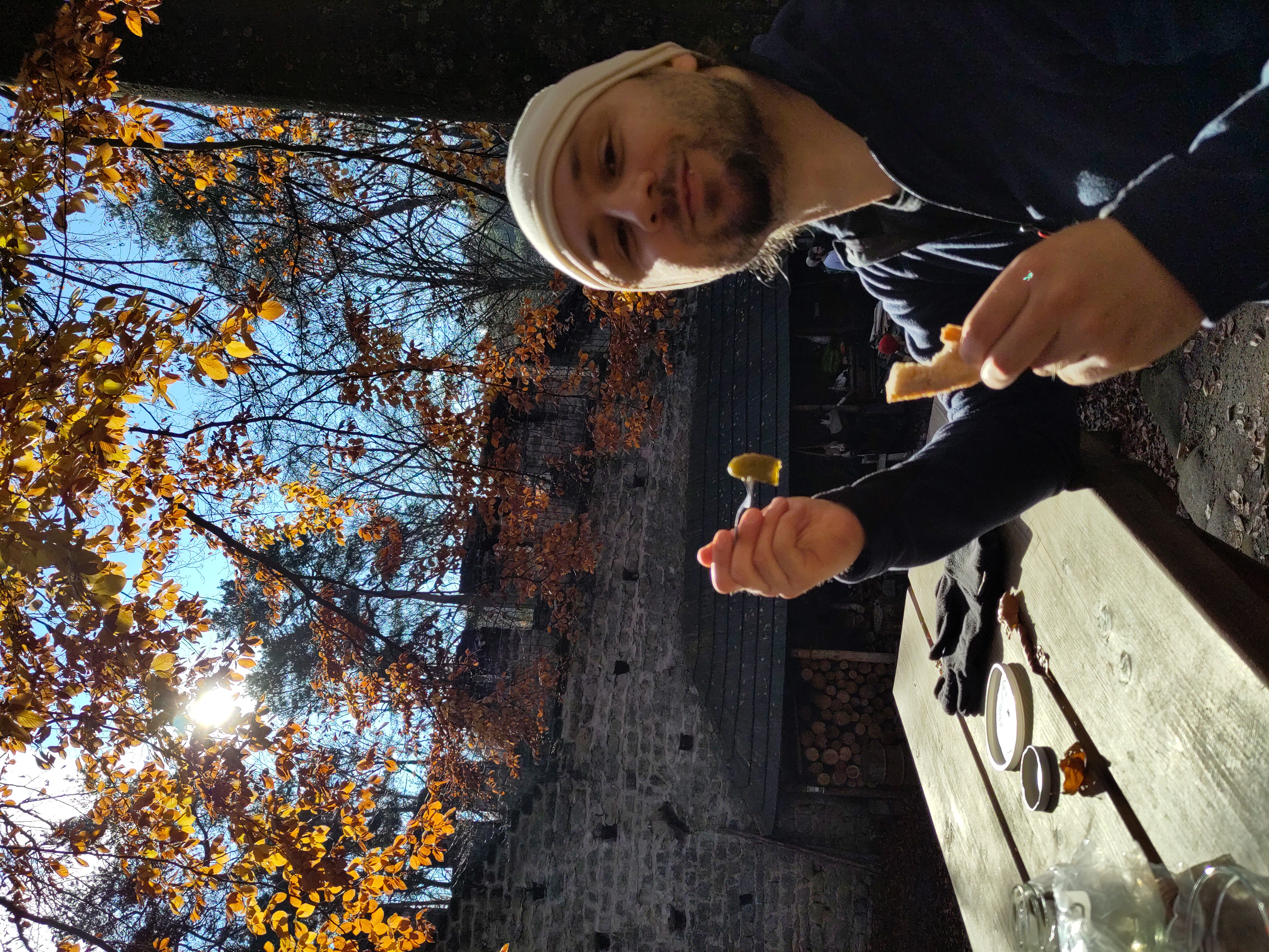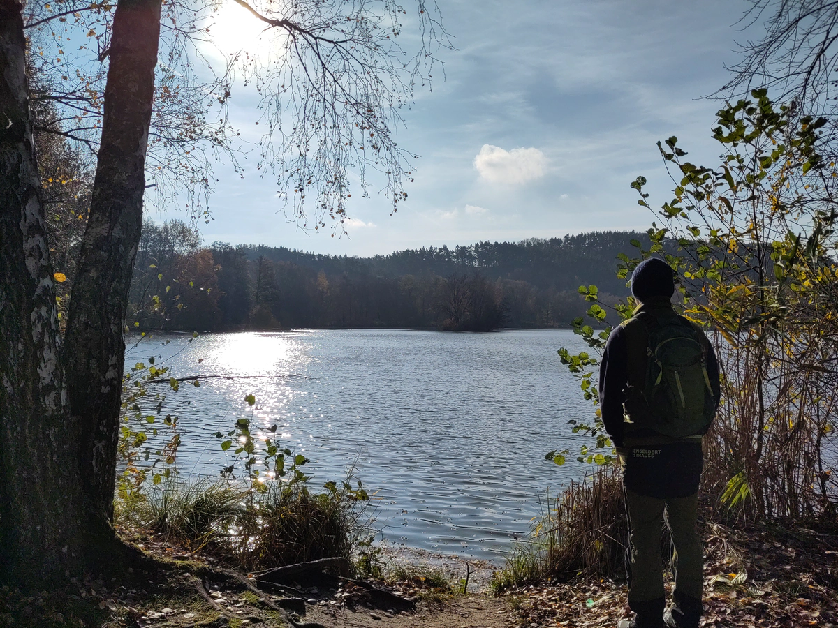 Jetzt kann’s wirklich losgehen. Wir packen noch die letzten Utensilien - vorzugsweise Kaffee 🫘 - ein und starten an einem recht trüben Herbsttag durch den Bayerischen Wald über die Grenze in den Böhmerwald Šumava. An einer kleinen Tankstelle machen wir kurz Biesel-Pause. Steff packt schon wieder seine Tschechisch Skills (mit sehr schlechtem polnischen Akzent) aus und organisiert uns a Weckerl (🇩🇪: belegtes Brot) zum broudln.